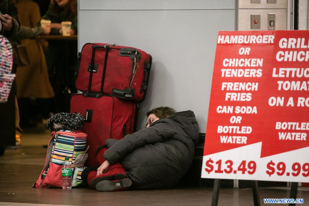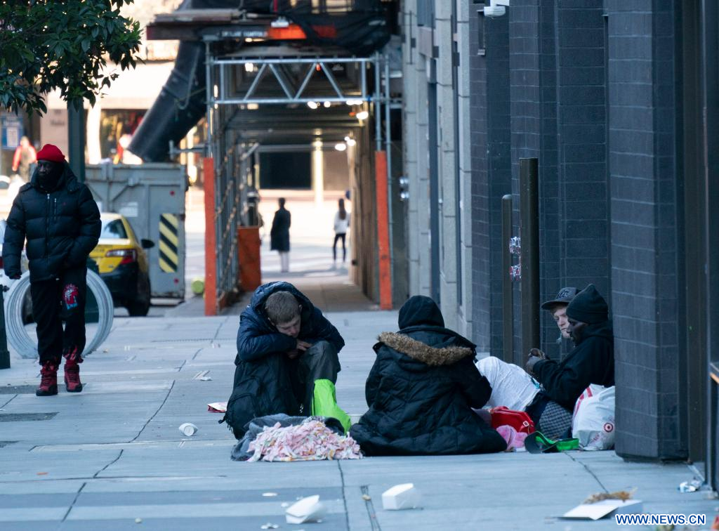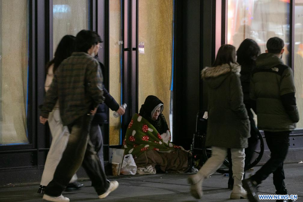 Imagen de una persona sin hogar vista, en Nueva York, Estados Unidos. El número de personas sin hogar en Estados Unidos ha aumentado un 12 por ciento hasta alcanzar una cifra récord, mostró un informe gubernamental el 15 de diciembre. (Xinhua/Michael Nagle)