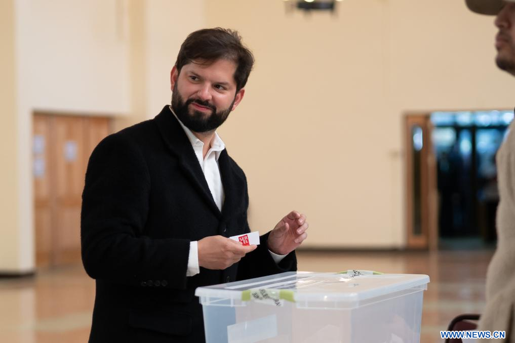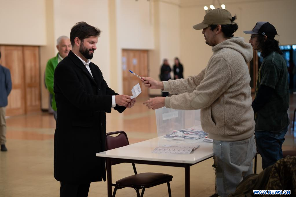 PUNTA ARENAS, 17 diciembre, 2023 (Xinhua) -- Imagen cedida por la Presidencia de Chile del presidente chileno, Gabriel Boric, emitiendo su voto durante el plebiscito constitucional en un centro electoral, en la ciudad de Punta Arenas, Chile, el 17 de diciembre de 2023. Los chilenos vuelven a votar el domingo, tras el rechazo a la propuesta anterior en 2022, en un plebiscito constitucional con carácter obligatorio, en una jornada con altas temperaturas en la zona central, miles de personas que presentaron sus excusas para no sufragar y promesas de concluir el proceso constituyente sea cual sea el resultado. (Xinhua/Presidencia de Chile)