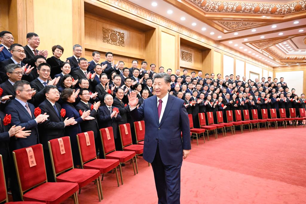 Alrededor de las 11:30 horas, Xi y otros llegaron al Salón Este del Gran Palacio del Pueblo en medio de una cálida ronda de aplausos. Xi y otros saludaron a los representantes y tuvieron un intercambio cordial con ellos antes de tomarse una foto grupal juntos.