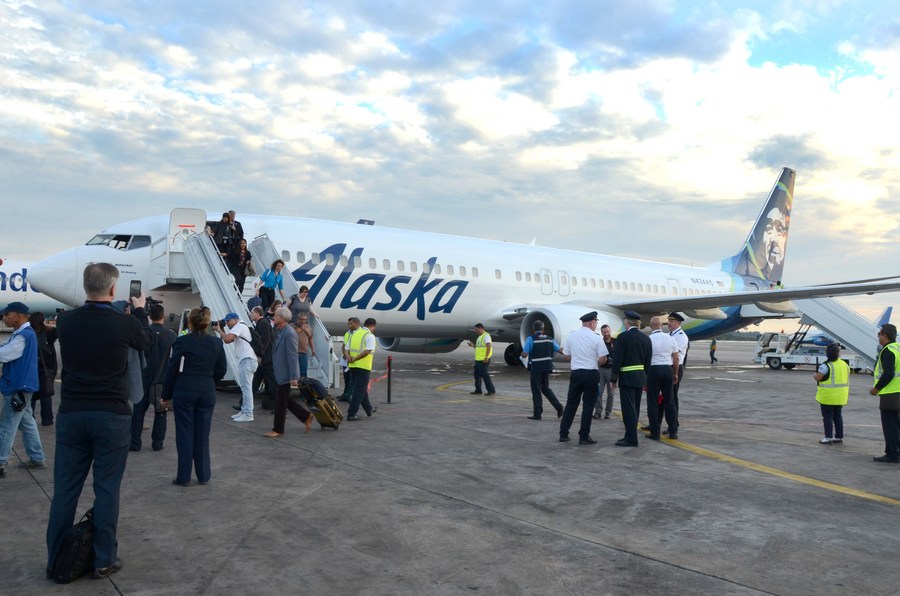 Imagen de archivo de pasajeros bajando del avión de Alaska Airlines, en el Aeropuerto Internacional José Martí, en La Habana, Cuba, el 5 de enero de 2017. (Xinhua/Joaquín Hernández)