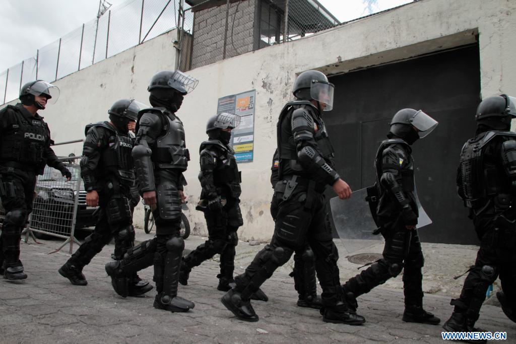 QUITO, 9 ene (Xinhua) -- La crisis de seguridad que golpea a Ecuador se agudizó en las últimas horas con una serie de hechos violentos como incineración de vehículos en las calles, secuestro de policías y motines en cárceles con guardias retenidos, en plena vigencia de un "estado de excepción" con toque de queda decretado por el Gobierno.
