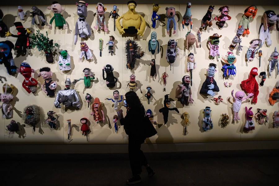 Una persona visita la exposición "Museo 31" de la serie de televisión infantil "31 Minutos" durante el Festival Internacional Teatro a Mil, en Santiago, capital de Chile. (Xinhua/Jorge Villegas)