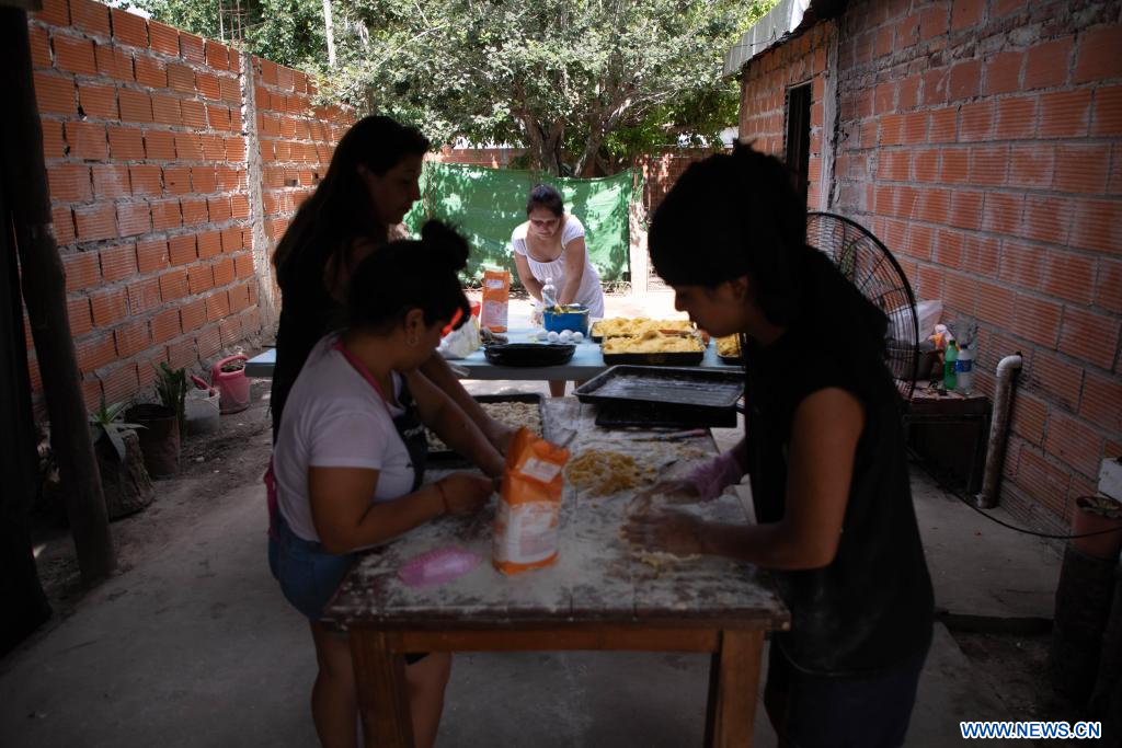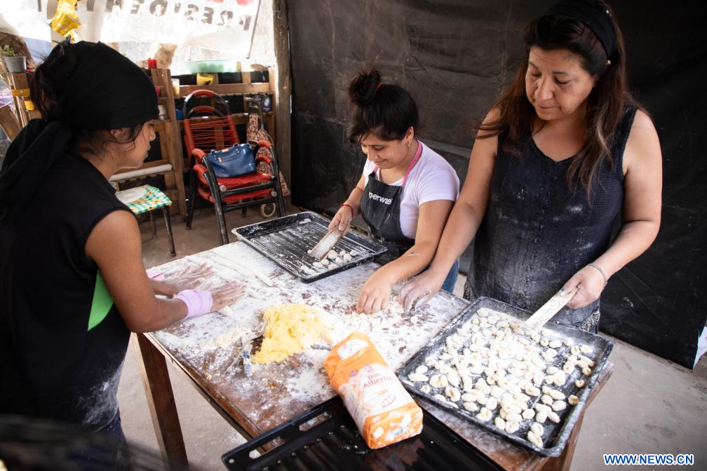 MORENO, 30 enero, 2024 (Xinhua) -- Imagen del 29 de enero de 2024 de voluntarias del comedor y merendero popular llamado Génesis amasando ñoquis de harina de maíz, en el partido de Moreno de la provincia de Buenos Aires, Argentina. Cada día más personas recurren en Argentina a los comedores comunitarios, frente a la agudización de la situación económica y en la búsqueda de una alternativa ante el elevado costo de la canasta alimentaria, constituyéndose estos espacios en refugios necesarios en medio de la crisis. (Xinhua/Martín Zabala)
