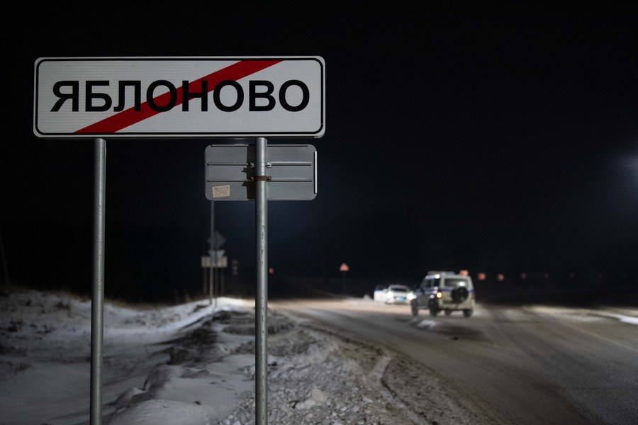 Vehículos policiales son vistos en servicio cerca del sitio donde se estrelló un avión de transporte militar, en la ciudad fronteriza de Bélgorod, Rusia, el 25 de enero de 2024. (Xinhua/Alexander Zemlianichenko Jr)