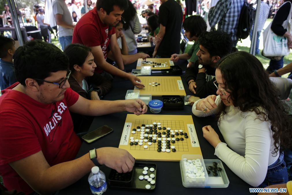 Imagen del 3 de febrero de 2024 de personas participando en un taller de Weiqi durante la tercera edición del Festival Cultural de Año Nuevo Chino en el Centro Nacional de las Artes (CENART), en la Ciudad de México, capital de México. (Xinhua/Francisco Cañedo)