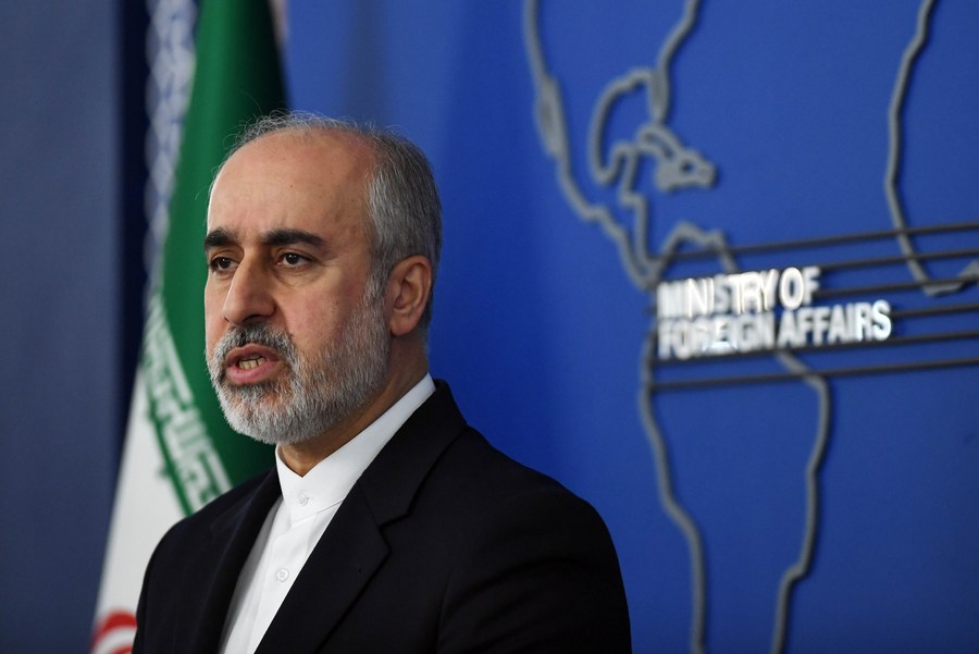 El portavoz del Ministerio de Relaciones Exteriores de Irán, Nasser Kanaani, habla durante una conferencia de prensa en Teherán, Irán, el 8 de enero de 2024. (Xinhua/Shadati)