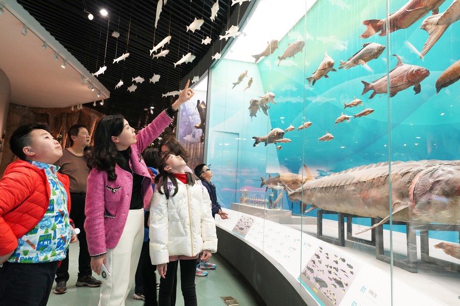Turistas visitan el Museo de Historia Natural de Chongqing, en la municipalidad de Chongqing, en el suroeste de China, el 13 de febrero de 2024. (Xinhua/Qin Tingfu)