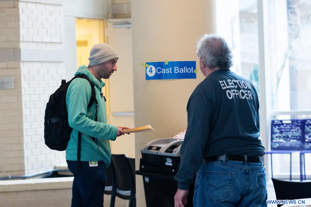 VIRGINIA, 5 marzo, 2024 (Xinhua) -- Un hombre emite su voto durante las primarias presidenciales 2024 en un centro de votación, en Arlington, Virginia, Estados Unidos, el 5 de marzo de 2024. Las urnas comienzan a abrirse en más de una docena de estados de Estados Unidos en el llamado "Supermartes", como parte de las primarias presidenciales 2024, con los votantes preocupados por los principales candidatos de ambos partidos. (Xinhua/Liu Jie)