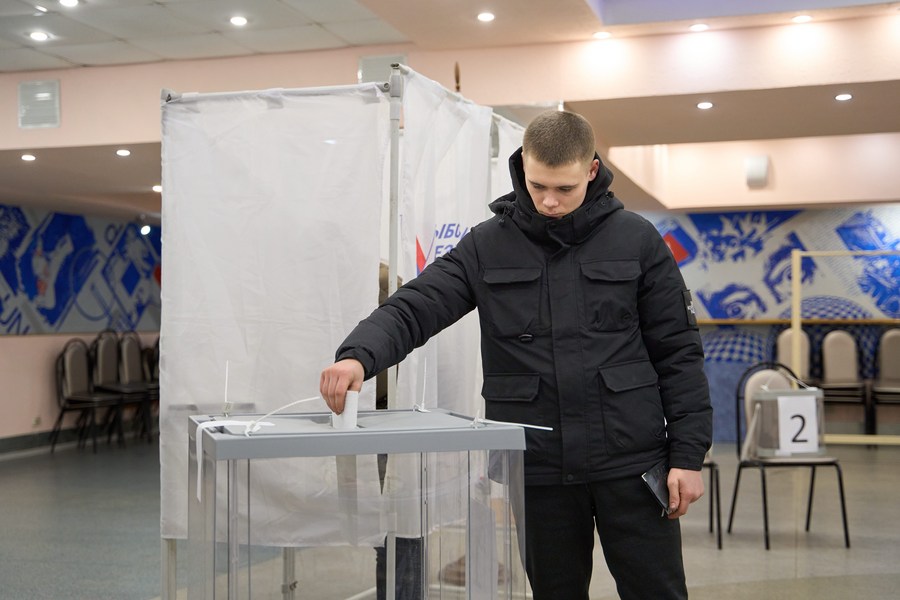 Un hombre emite su voto, en Vladivostok, Rusia, el 15 de marzo de 2024. (Xinhua/Guo Feizhou)