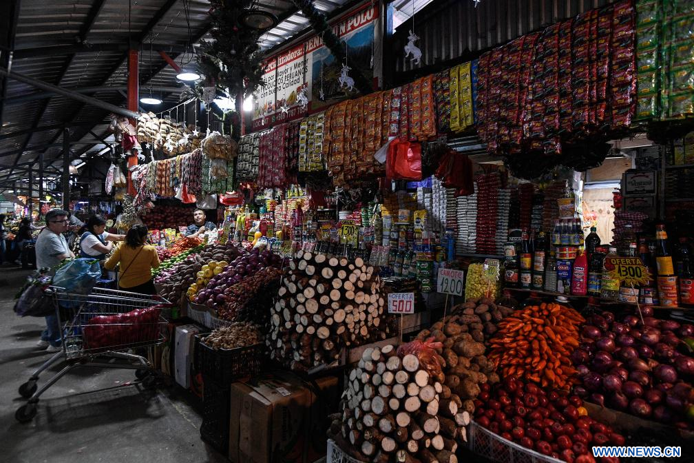 Personas realizan compras en el mercado La Vega Central, en Santiago, capital de Chile, el 19 de marzo de 2024. La economía chilena creció un leve 0,2 por ciento en 2023, arriba de lo esperado por analistas locales consultados por Xinhua, que preveían una nula o negativa expansión del Producto Interno Bruto (PIB) el año anterior, de acuerdo con cifras del Banco Central divulgadas el lunes. (Xinhua/Jorge Villegas)