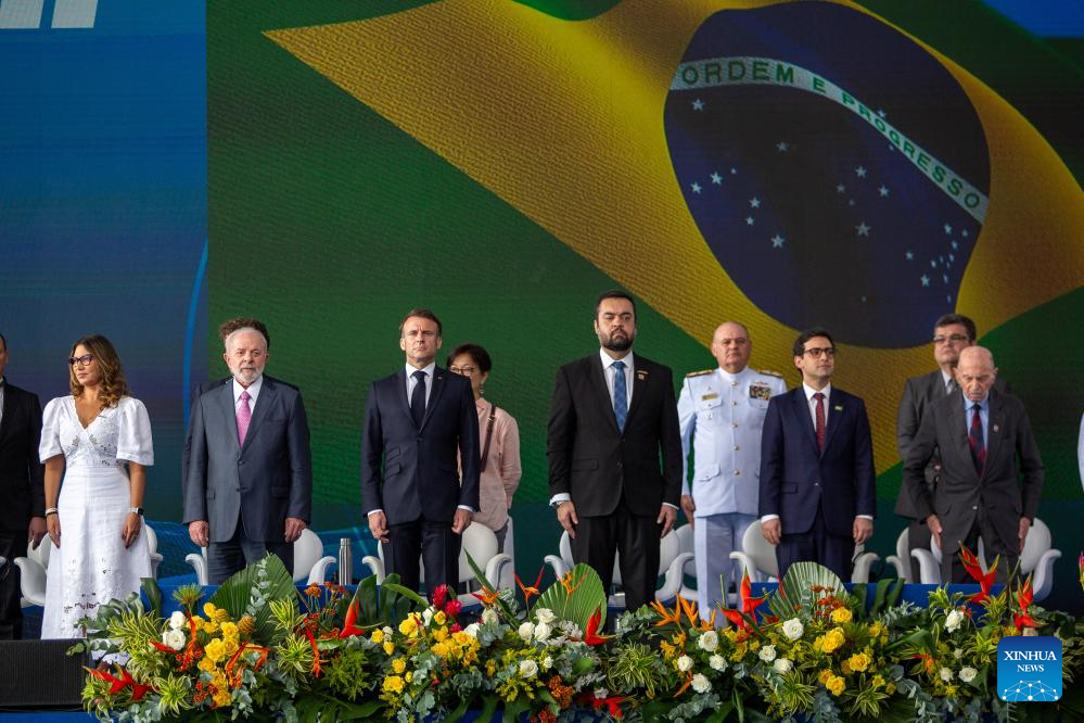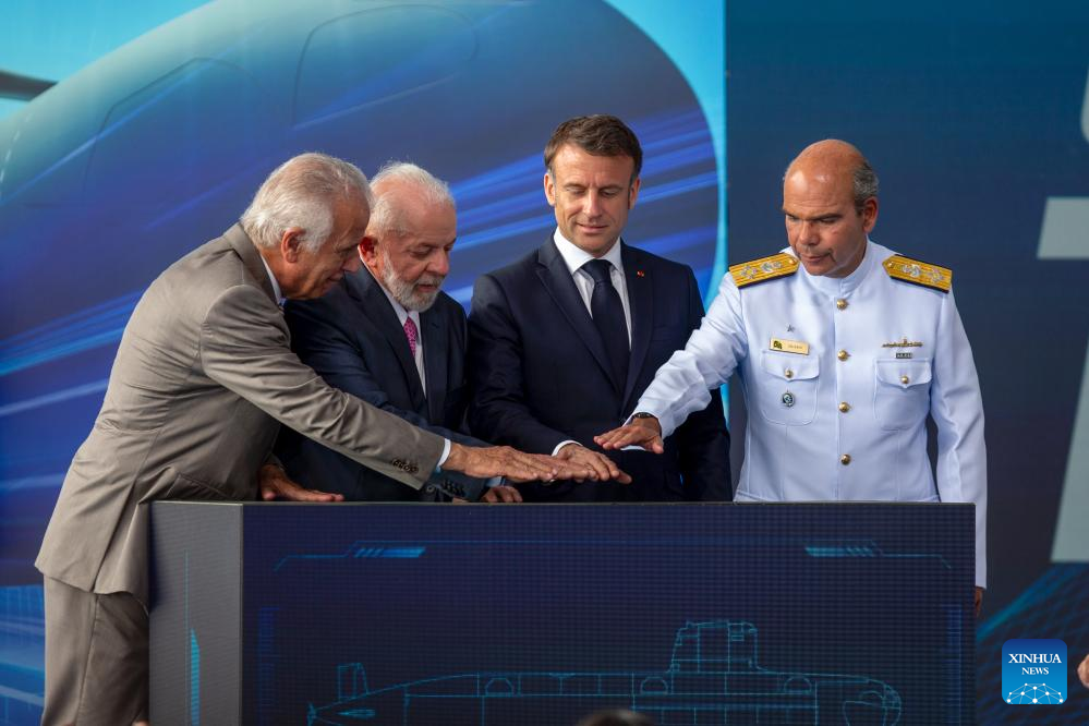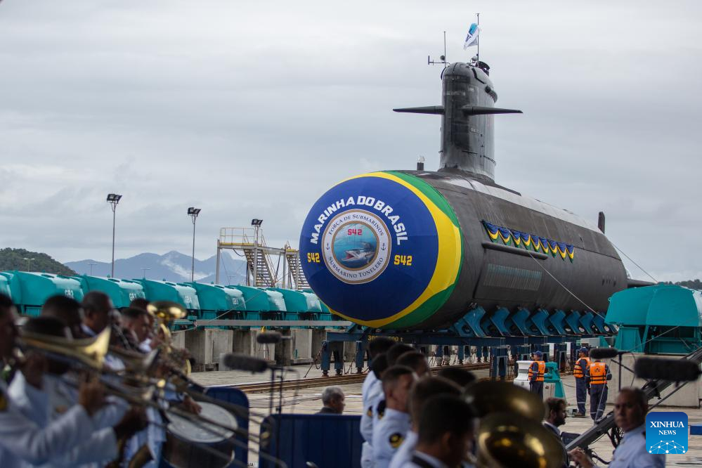 RÍO DE JANEIRO, 27 mar (Xinhua) -- Brasil lanzó hoy al mar el submarino "Tonelero", el tercero que construye tras una asociación con Francia en el marco del Programa de Desarrollo de Submarinos (ProSub), en una ceremonia de bautizo y botadura de la nave que contó con la presencia de los presidentes de ambos países, Luiz Inácio Lula da Silva y Emmanuel Macron, en el litoral de Río de Janeiro (sureste).