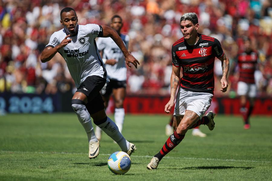RÍO DE JANEIRO, 28 abr (Xinhua) -- Botafogo venció a Flamengo por 2-0 este domingo en el derbi carioca válido por la cuarta fecha del Campeonato Brasileño de fútbol y, con nueve puntos, asumió el liderato de la tabla, seguido por Atlético Mineiro y Bragantino.