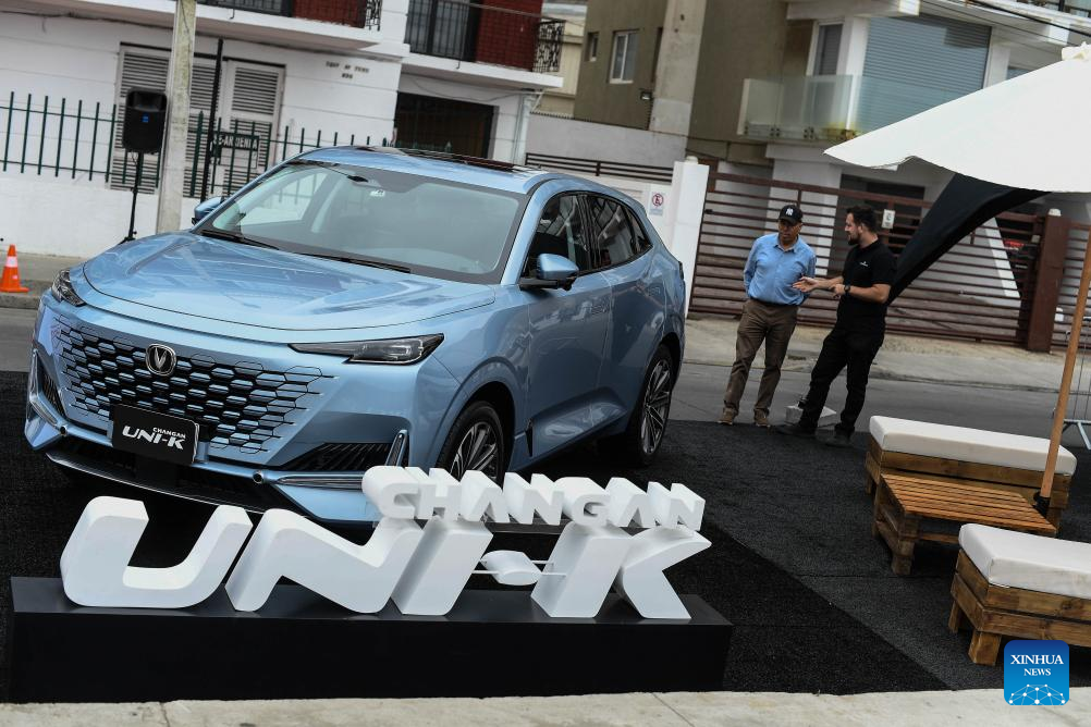 Imagen del 5 marzo de 2024 de personas observando un automóvil durante la primera Exposición Itinerante Internacional de Automóviles Chinos en Chile, organizada por el Consejo Chino para el Fomento del Comercio Internacional, en Viña del Mar, Chile. Medidas proteccionistas como la imposición de aranceles adicionales a los vehículos eléctricos chinos, anunciadas recientemente por la Comisión Europea y Estados Unidos, perjudican la transición hacia la electromovilidad y su desarrollo a bajo costo, dijo el académico chileno Cristian García. (Xinhua/Jorge Villegas)