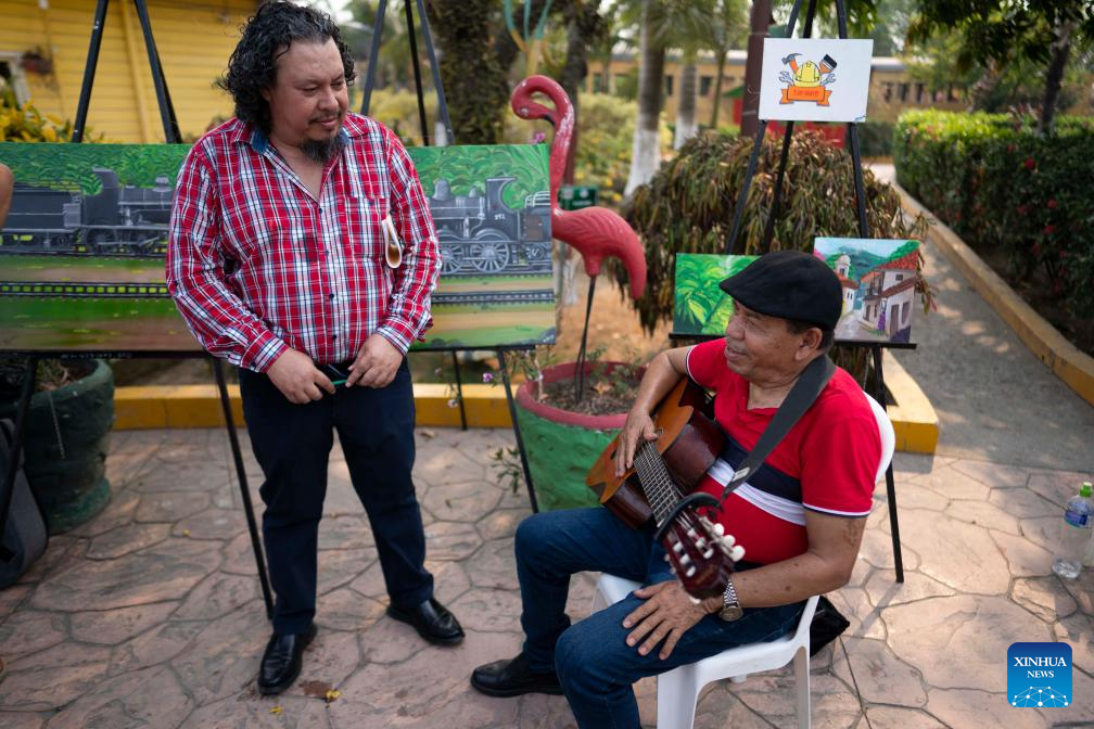 EL PROGRESO, 16 junio, 2024 (Xinhua) -- Imagen del 25 de mayo de 2024 del sociólogo hondureño Eugenio Sosa (i), director del Instituto Nacional de Estadísticas de Honduras, conversando con el cantautor hondureño, Mario de Mezapa (d), en el Museo Ferroviario, en la ciudad de El Progreso, Honduras. La profunda influencia de las compañías bananeras en el pasado de Honduras y el control económico y político de Estados Unidos configuraron una forma de "neocolonialismo", historia de la que el pueblo hondureño aprendió que el desarrollo independiente es clave para una economía nacional más sólida y diversificada, afirmó Sosa. (Xinhua/David de la Paz)