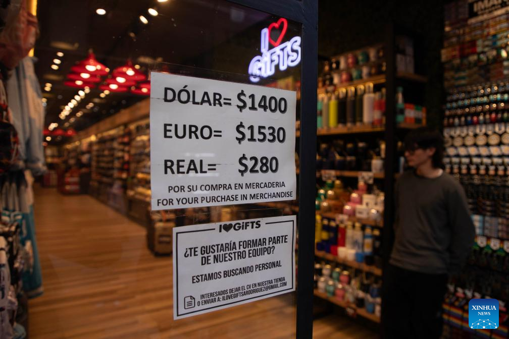 Un cartel indica la cotización del dólar paralelo en un local comercial, en la ciudad de Buenos Aires, capital de Argentina, el 1 de julio de 2024. (Xinhua/Martín Zabala)