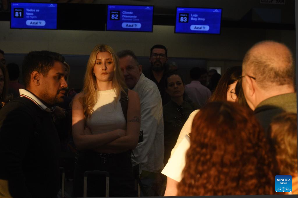BRASILIA, 19 julio, 2024 (Xinhua) -- Pasajeros de la aerolínea Azul esperan para abordar su vuelo hacia Sao Paulo durante las afectaciones provocadas por una falla informática global, en el aeropuerto Juscelino Kubitschek, en Brasilia, Brasil, el 19 de julio de 2024. Brasil se vio afectado parcialmente por la falla informática global ocurrida el viernes, con problemas en el funcionamiento de algunos aeropuertos y bancos, así como en el portal web de noticias del Supremo Tribunal Federal, la máxima corte del país. (Xinhua/Lucio Tavora)