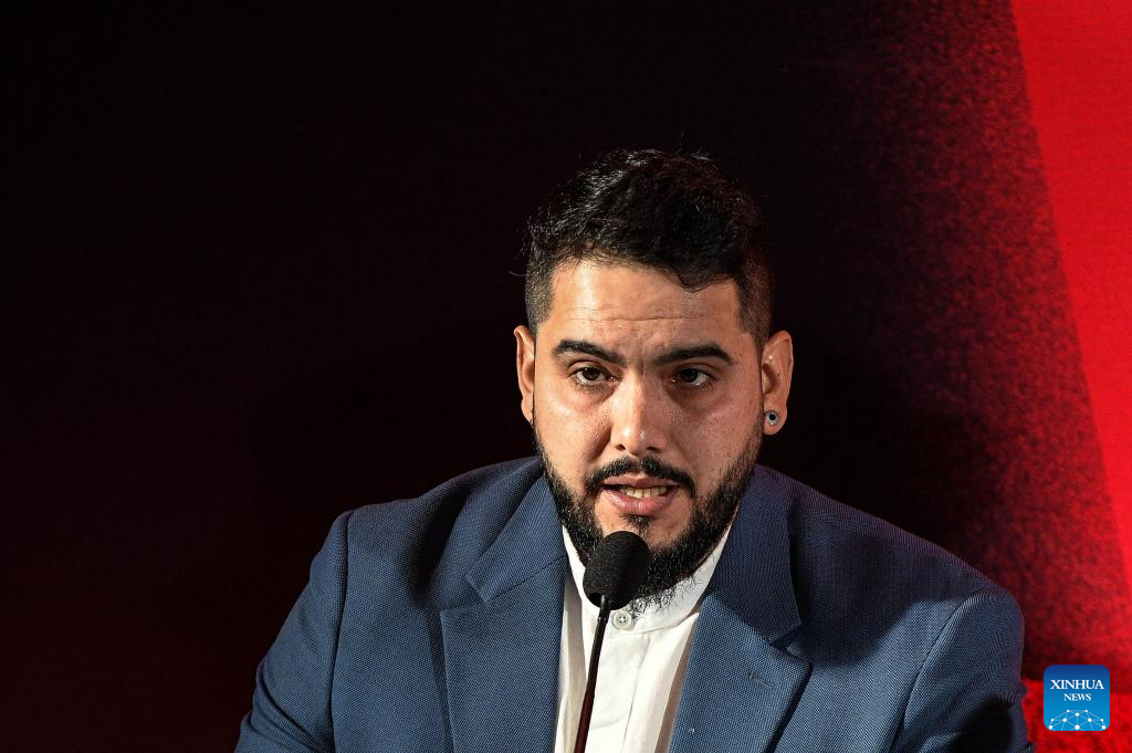Imagen del 23 de julio de 2024 del jefe de Programación, Educación y Participación de Fundación CorpArtes, Ismael Negrete, hablando durante una conferencia de prensa de la edición 20 del Santiago Festival Internacional de Cine, en Santiago, capital de Chile. (Xinhua/Jorge Villegas)