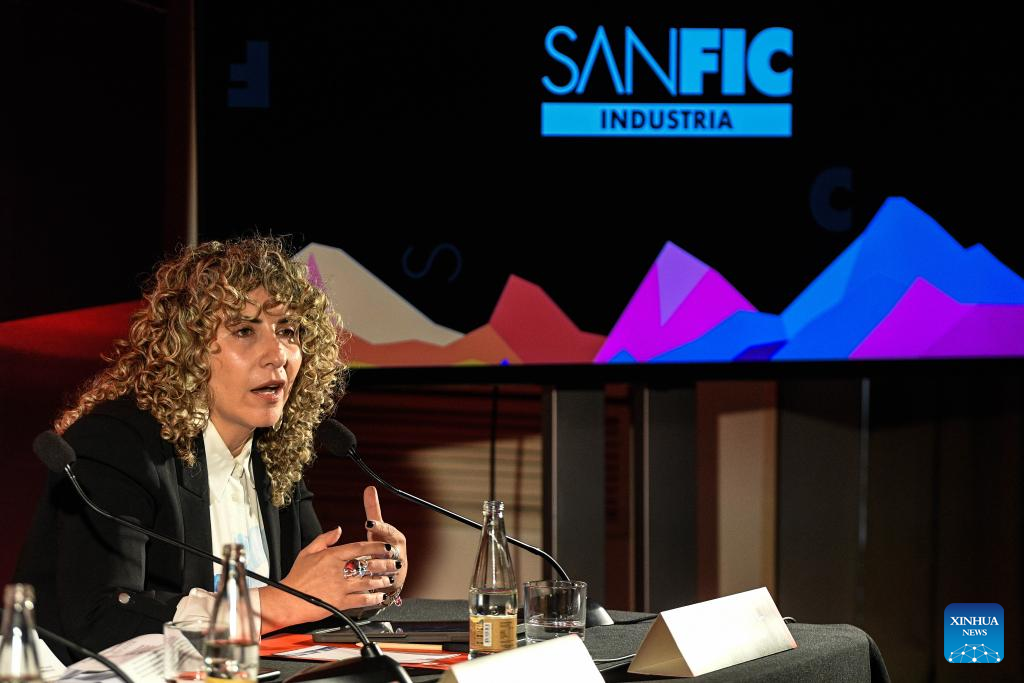 Imagen del 23 de julio de 2024 de la directora del Santiago Festival Internacional de Cine (Sanfic) Industria, Gabriela Sandoval, hablando durante una conferencia de prensa de la edición 20 del Sanfic, en Santiago, capital de Chile. (Xinhua/Jorge Villegas)