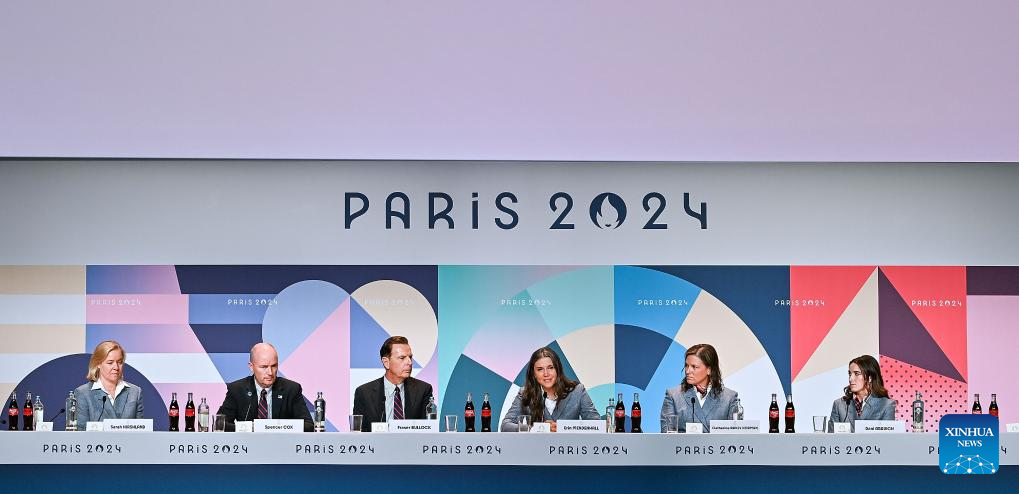 Imagen del 24 de julio de 2024 de una conferencia de prensa después de que la ciudad estadounidense de Salt Lake City fuera designada como sede de los Juegos Olímpicos de Invierno de 2034, en París, Francia. (Xinhua/Wu Huiwo)