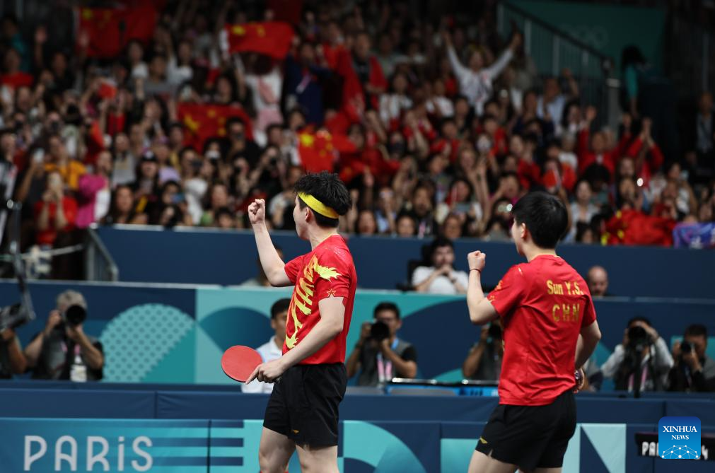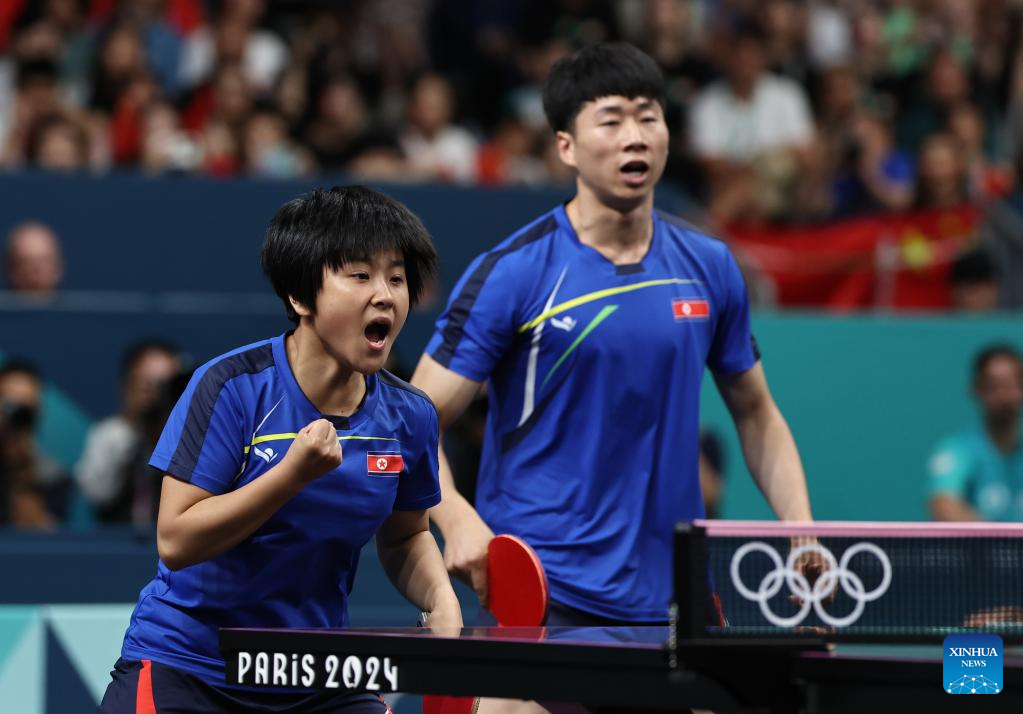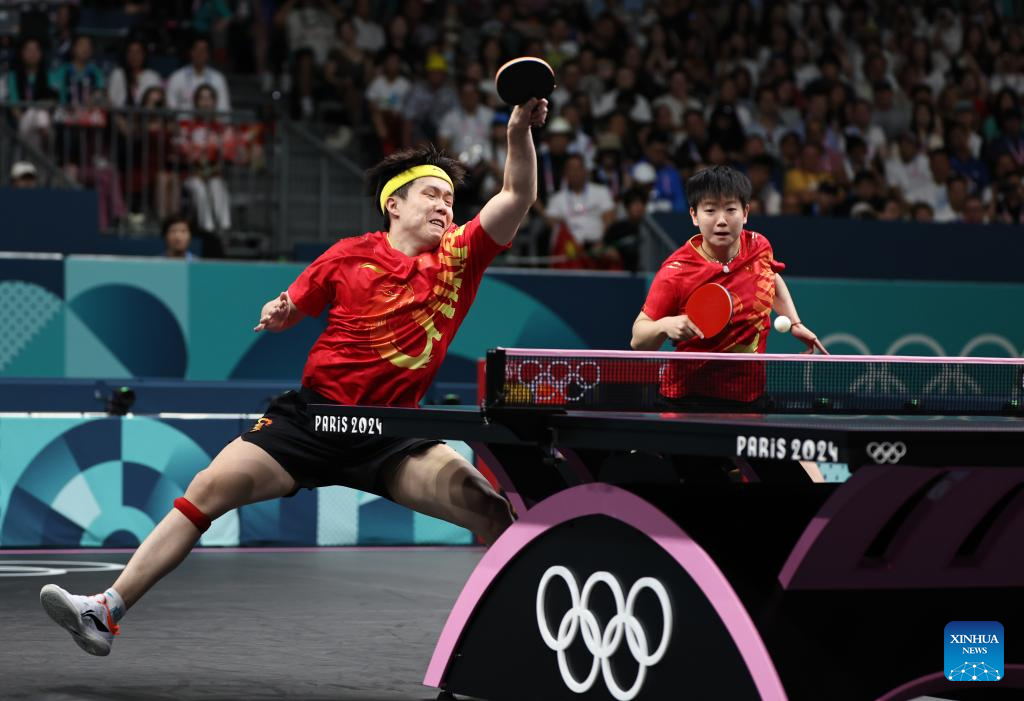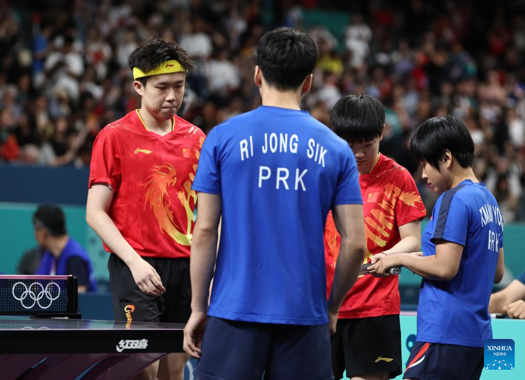 PARÍS, 30 jul (Xinhua) -- La pareja china formada por Wang Chuqin y Sun Yingsha ganó hoy martes la medalla de oro de dobles mixtos de tenis de mesa en los Juegos Olímpicos de París después de vencer a Ri Jong Sik y Kim Kum Yong de la República Popular Democrática de Corea (RPDC) por 4-2 en la final.