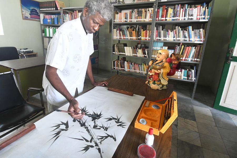 LA HABANA, 29 jul (Xinhua) -- Desde hace más de una década el cubano Alexis González expresa sus raíces chinas en las obras que realiza en un modesto estudio en la Casa de las Artes y Tradiciones Chinas, en La Habana.