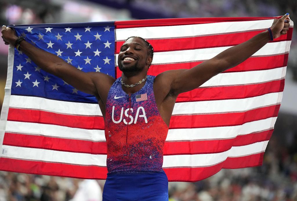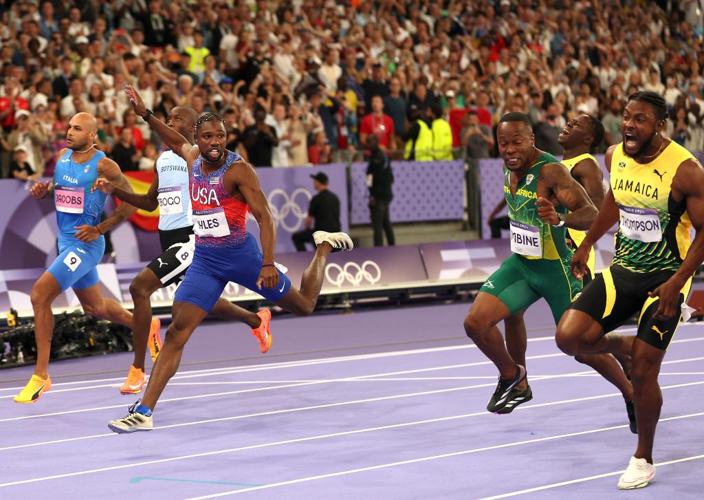 PARÍS, 4 ago (Xinhua) -- Noah Lyles de Estados Unidos ganó hoy la medalla de oro en los 100 metros masculino de los Juegos Olímpicos de París tras derrotar a Kishane Thompson de Jamaica en un final de fotografía.