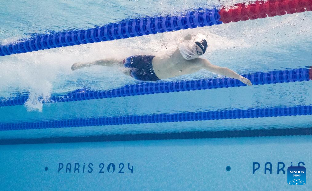 PARIS, 4 agosto, 2024 (Xinhua) -- Bobby Finke de Estados Unidos compite durante la final de 1.500 metros estilo libre masculino de natación en los Juegos Olímpicos de París 2024, en París, Francia, el 4 de agosto de 2024. (Xinhua/Xia Yifang)