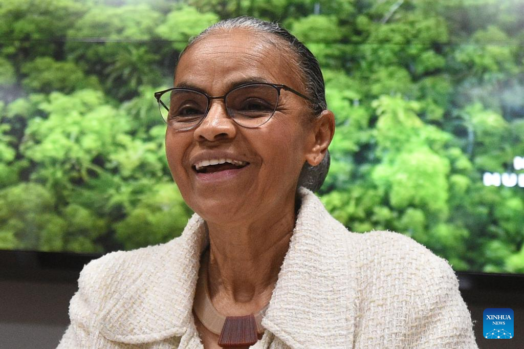 BRASILIA, 7 agosto, 2024 (Xinhua) -- La ministra de Medio Ambiente y Cambio Climático brasileña, Marina Silva, habla durante una conferencia de prensa para presentar datos sobre deforestación en la Amazonia, en Brasilia, Brasil, el 7 de agosto de 2024. La deforestación en la Amazonia brasileña cayó un 45,7 por ciento entre agosto de 2023 y julio de 2024, la mayor caída proporcional jamás registrada para el periodo, reveló el miércoles el Instituto Nacional de Investigaciones Espaciales. (Xinhua/Lucio Tavora)