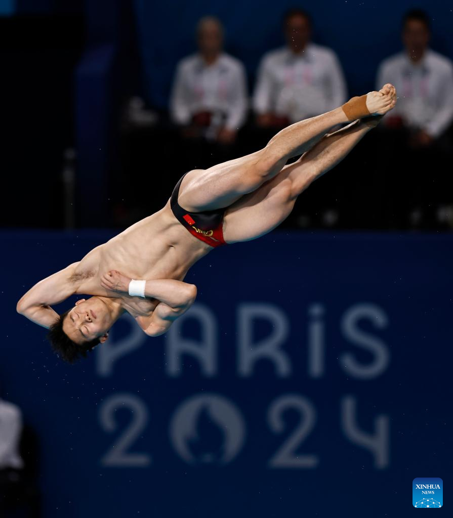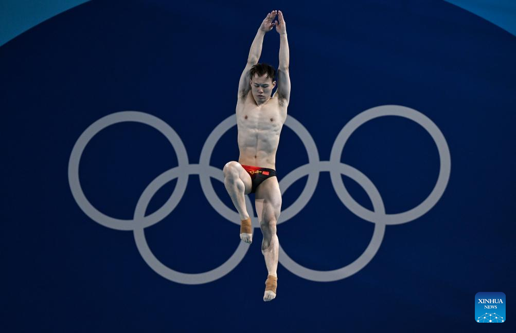PARÍS, 8 ago (Xinhua) -- El veterano chino Xie Siyi se impuso hoy jueves a su compañero de equipo Wang Zongyuan para defender su título en trampolín de tres metros masculino en los Juegos Olímpicos de París.