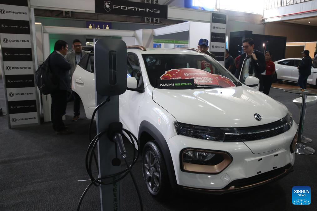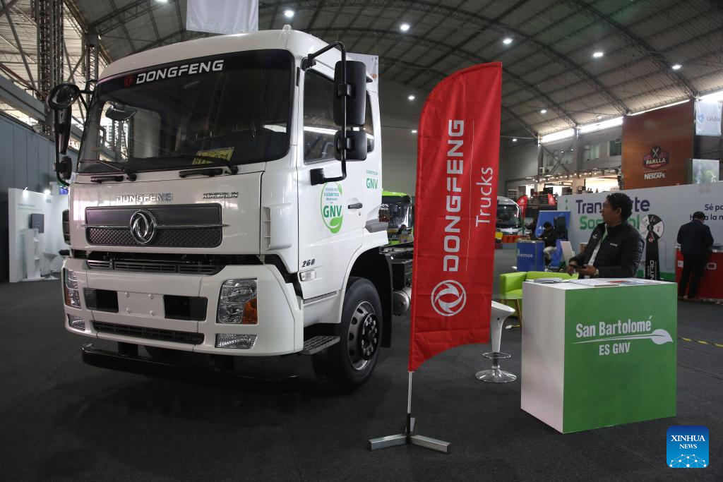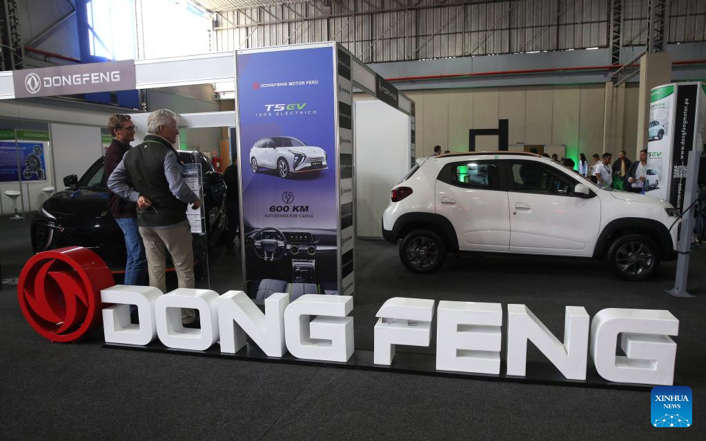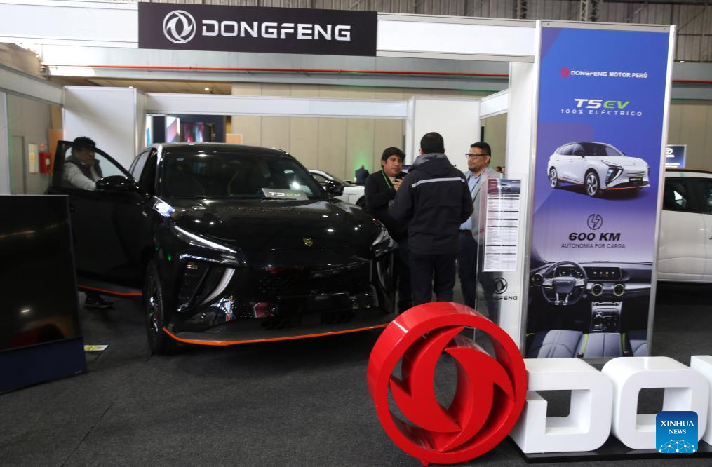 LIMA, 17 agosto, 2024 (Xinhua) -- Imagen del 15 de agosto de 2024 de personas observando un vehículo eléctrico de la marca china Dongfeng durante el evento "Transporte Sostenible 2024" en el Centro de Exposiciones Jockey, en el sur de Lima, Perú. Lograr un mayor uso de la electromovilidad y gas natural en el sector transporte de Perú puede tener un impacto muy positivo en el bolsillo de los ciudadanos, indicó el sábado el presidente del Comité Consultivo de Transporte Sostenible, Erick García. (Xinhua/Mariana Bazo)
