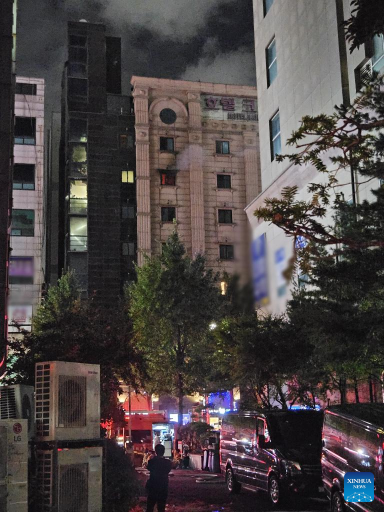 Imagen del 22 de agosto de 2024 del sitio de un incendio en un hotel, en Bucheon, República de Corea. Un incendio estalló en un hotel de la ciudad de Bucheon, en la provincia de Gyeonggi de la República de Corea. (Xinhua/NEWSIS)