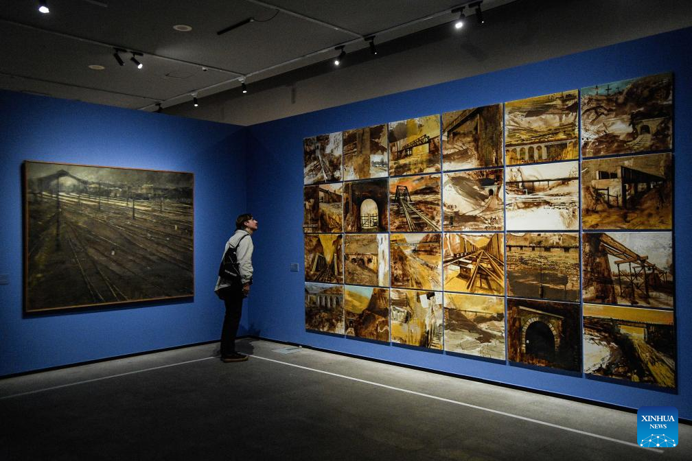 SANTIAGO, 30 agosto, 2024 (Xinhua) -- Imagen del 28 de agosto de 2024 de una persona visitando la exposición "Por la línea corre el tren" en el Centro Cultural La Moneda, en Santiago, capital de Chile. "Hierro negro que duerme, fierro negro que gime, por cada poro un grito de desconsolación" es parte del poema "Maestranzas de noche" del nobel Pablo Neruda y musicalizado por la banda Congreso, una de las cientos de piezas exhibidas en "Por la línea corre el tren", muestra que cuenta la historia de los 140 años de la Empresa de Ferrocarriles del Estado de Chile a través del arte, objetos, testimonios y material de archivo. (Xinhua/Jorge Villegas)