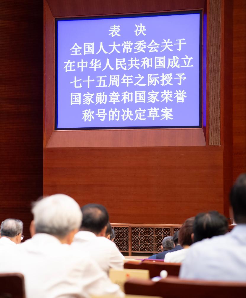 Además, adoptaron una decisión sobre la concesión de medallas nacionales y títulos honoríficos con motivo del 75º aniversario de la fundación de la República Popular China, y una decisión sobre la remoción de Tang Renjian del cargo de ministro de Agricultura y Asuntos Rurales y el nombramiento de Han Jun para ocupar ese puesto.