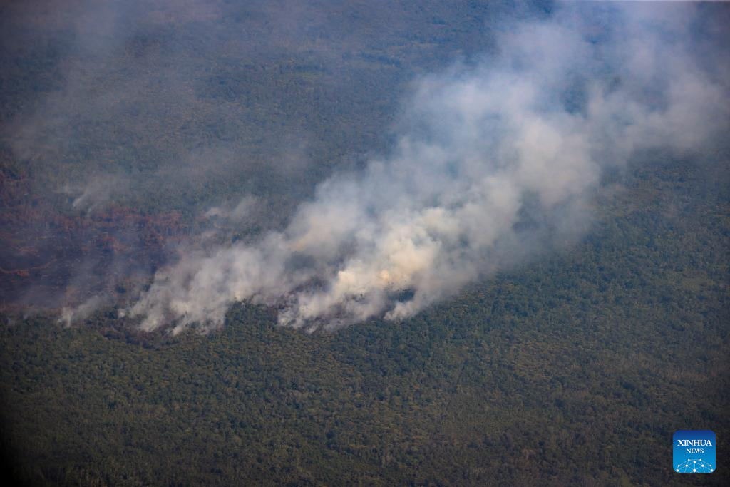 SAN MARTIN, 20 septiembre, 2024 (Xinhua) -- Vista aérea cedida por la Presidencia de Perú del 19 de septiembre de 2024 de un incendio forestal, en la región San Martín, Perú. La presidenta de Perú, Dina Boluarte, declaró el miércoles en emergencia las regiones de Amazonas, San Martín y Ucayali, duramente afectadas por los incendios forestales que afectan al país. (Xinhua/Presidencia de Perú)