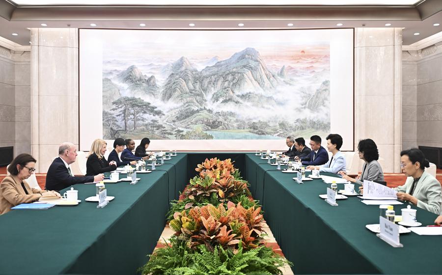 BEIJING, 15 oct (Xinhua) -- La consejera de Estado china, Shen Yiqin, se reunió con la directora ejecutiva del Fondo de las Naciones Unidas para la Infancia (Unicef, siglas en inglés), Catherine Russell, el lunes en Beijing.