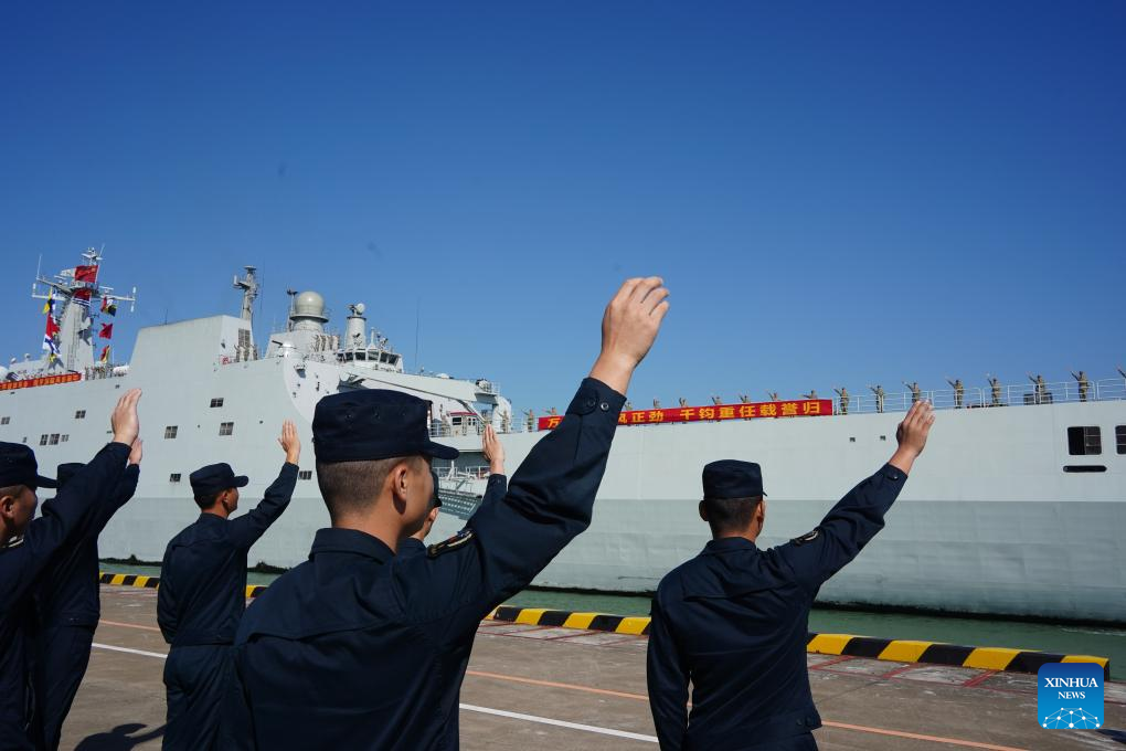 GUANGZHOU, 1 nov (Xinhua) -- Una flota de la Armada china, integrada por los buques Qijiguang y Jinggangshan, regresó hoy viernes a su puerto militar en la ciudad de Zhanjiang, provincia de Guangdong, en el sur de China, tras concluir su misión de 35 días de entrenamiento oceánico y visitas a ultramar.