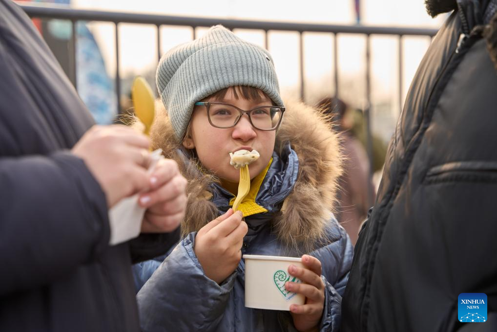 VLADIVOSTOK, 5 enero, 2025 (Xinhua) -- Un niño prueba dumplings, también conocidos como jiaozi, durante un evento del día del dumpling, en Vladivostok, Rusia, el 5 de enero de 2025. (Xinhua/Guo Feizhou)