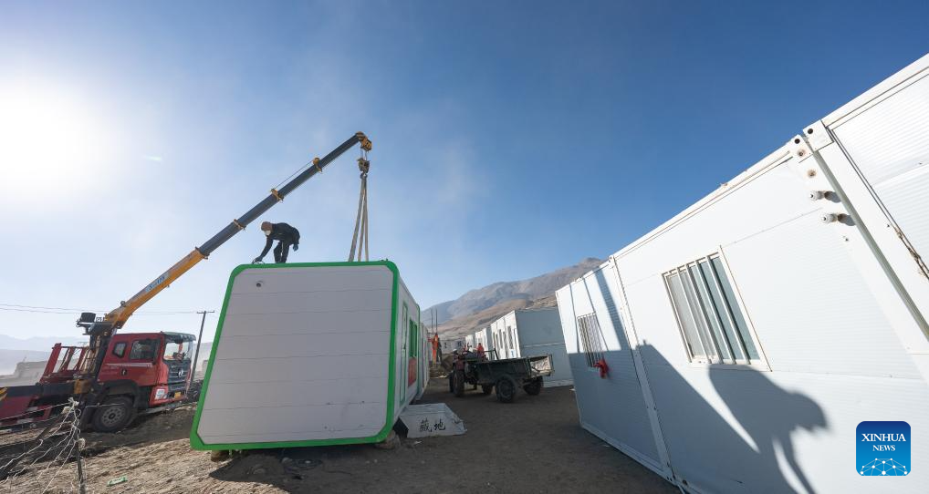 DINGRI, 16 enero, 2025 (Xinhua) -- Imagen del 14 de enero de 2025 de trabajadores instalando una vivienda improvisada, en el poblado de Chamco, en el distrito de Dingri, en Xigaze, en la región autónoma de Xizang, en el suroeste de China. El trabajo de socorro en casos de desastre en el distrito de Dingri, afectado por el terremoto, incluyendo la construcción de viviendas improvisadas, el transporte de suministros y el trabajo de retiro de escombros se han acelerado para satisfacer mejor las necesidades y mejorar las condiciones de vida de los residentes. (Xinhua/Tenzin Nyida)
