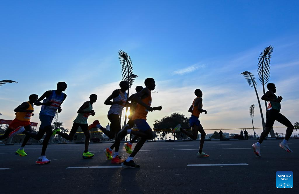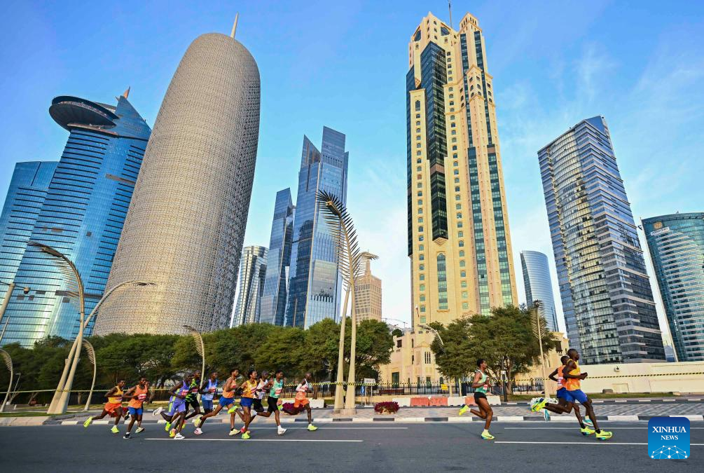 DOHA, 17 enero, 2025 (Xinhua) -- Participantes corren durante el Maratón de Doha 2025, en Doha, Qatar, el 17 de enero de 2025. (Xinhua/Nikku)