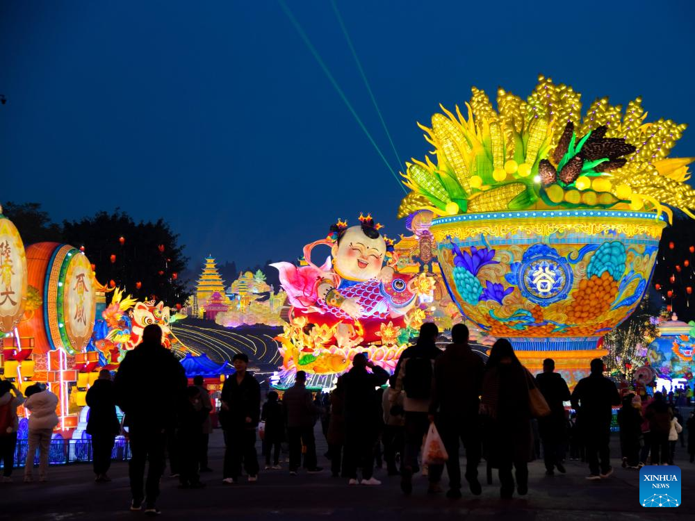 ZIGONG, 17 enero, 2025 (Xinhua) -- Turistas visitan el 31 Espectáculo Internacional de Linternas de Dinosaurio de Zigong, en Zigong, en la provincia de Sichuan, en el suroeste de China, el 17 de enero de 2025. El 31 Espectáculo Internacional de Linternas de Dinosaurio de Zigong, comenzó aquí el viernes. El espectáculo de linternas de este año está organizado con doce grupos de juegos de luces súper grandes, siete grupos de juegos de luces grandes y más de 200 grupos de juegos de luces pequeños y medianos. La escala de las exhibiciones de linternas ha establecido un nuevo récord en la historia del Espectáculo Internacional de Linternas de Dinosaurios de Zigong. (Xinhua/Wang Xi)