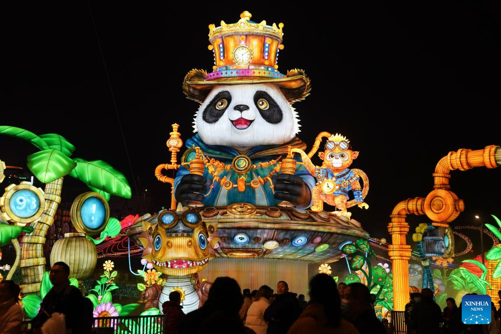 ZIGONG, 17 enero, 2025 (Xinhua) -- Linternas son vistas durante el 31 Espectáculo Internacional de Linternas de Dinosaurio de Zigong, en Zigong, en la provincia de Sichuan, en el suroeste de China, el 17 de enero de 2025. El 31 Espectáculo Internacional de Linternas de Dinosaurio de Zigong, comenzó aquí el viernes. El espectáculo de linternas de este año está organizado con doce grupos de juegos de luces súper grandes, siete grupos de juegos de luces grandes y más de 200 grupos de juegos de luces pequeños y medianos. La escala de las exhibiciones de linternas ha establecido un nuevo récord en la historia del Espectáculo Internacional de Linternas de Dinosaurios de Zigong. (Xinhua/Xu Bingjie)