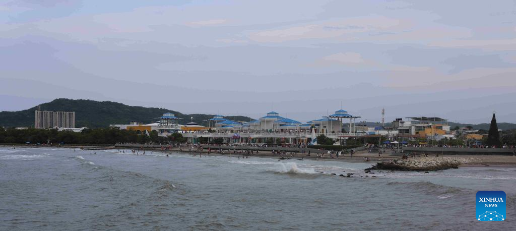 PUERTO COLOMBIA, 17 enero, 2025 (Xinhua) -- Imagen del 3 de enero de 2025 de personas disfrutando de su tiempo libre en la playa, en Puerto Colombia, Colombia. La construcción de Puerto Colombia comenzó en 1888 y el muelle de la ciudad se puso en funcionamiento en 1893. Puerto Colombia sufrió un declive gradual con el desarrollo del cercano puerto de Barranquilla, y su muelle fue oficialmente desmantelado en 1943. En la última década el gobierno colombiano ha renovado partes del erosionado muelle de la ciudad. La ciudad adquirió así una renovada vitalidad a medida que se exploraban más a fondo sus valores históricos, culturales y turísticos. (Xinhua/Zhou Shengping)
