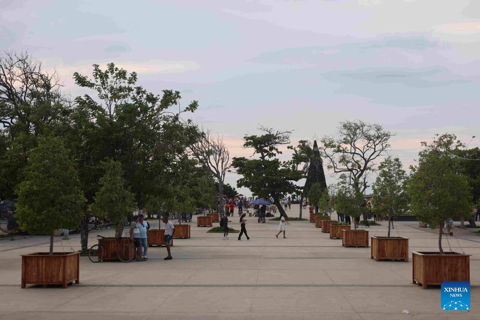 PUERTO COLOMBIA, 17 enero, 2025 (Xinhua) -- Imagen del 3 de enero de 2025 de una plaza cerca del muelle de Puerto Colombia, Colombia. La construcción de Puerto Colombia comenzó en 1888 y el muelle de la ciudad se puso en funcionamiento en 1893. Puerto Colombia sufrió un declive gradual con el desarrollo del cercano puerto de Barranquilla, y su muelle fue oficialmente desmantelado en 1943. En la última década el gobierno colombiano ha renovado partes del erosionado muelle de la ciudad. La ciudad adquirió así una renovada vitalidad a medida que se exploraban más a fondo sus valores históricos, culturales y turísticos. (Xinhua/Zhou Shengping)