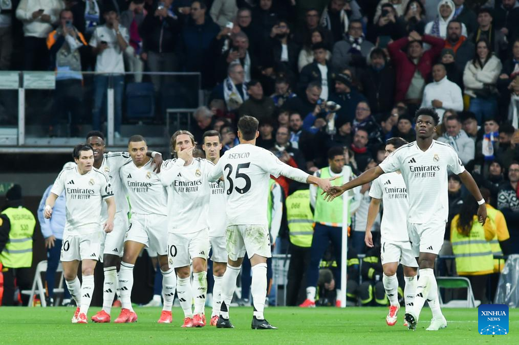 MADRID, 17 enero, 2025 (Xinhua) -- Imagen del 16 de enero de 2025 de jugadores del Real Madrid festejando una anotación durante el partido de fútbol de la Copa del Rey entre Real Madrid y RC Celta, en Madrid, España. (Xinhua/Gustavo Valiente)