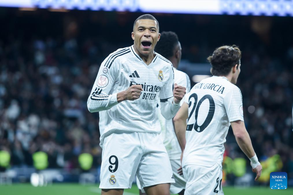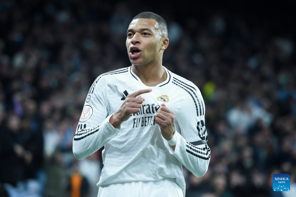 MADRID, 17 enero, 2025 (Xinhua) -- Imagen del 16 de enero de 2025 de Kylian Mbappé, de Real Madrid, festejando una anotación durante el partido de fútbol de la Copa del Rey entre Real Madrid y RC Celta, en Madrid, España. (Xinhua/Gustavo Valiente)