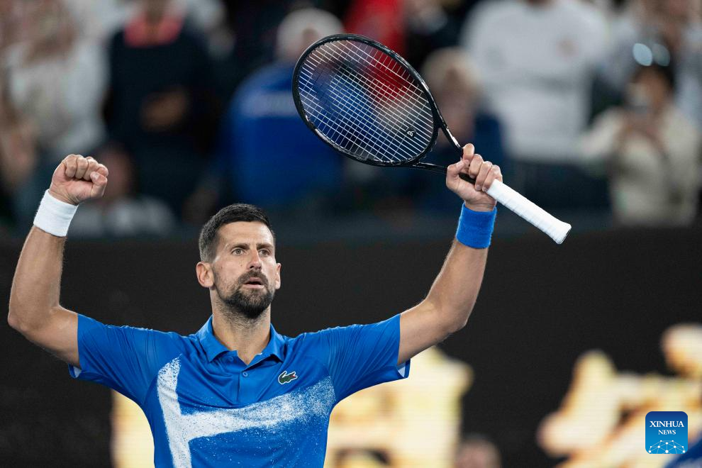 MELBOURNE, 17 enero, 2025 (Xinhua) -- Novak Djokovic festeja después de ganar el partido de tercera ronda de individuales masculinos entre Novak Djokovic, de Serbia, y Tomas Machac, de República Checa, en el torneo de tenis Abierto de Australia, en Melbourne, Australia, el 17 de enero de 2025. (Xinhua/Lui Siu Wai)