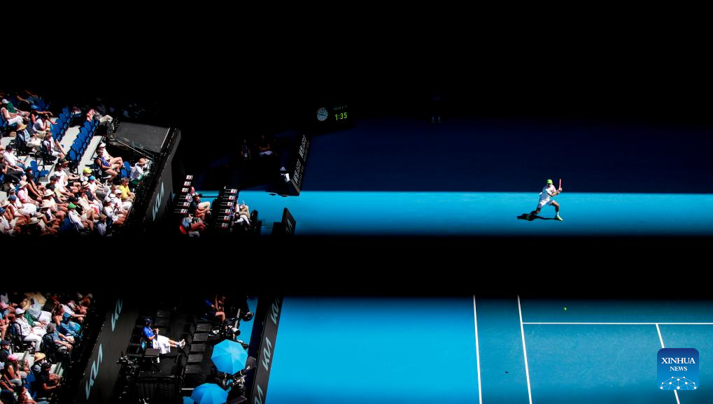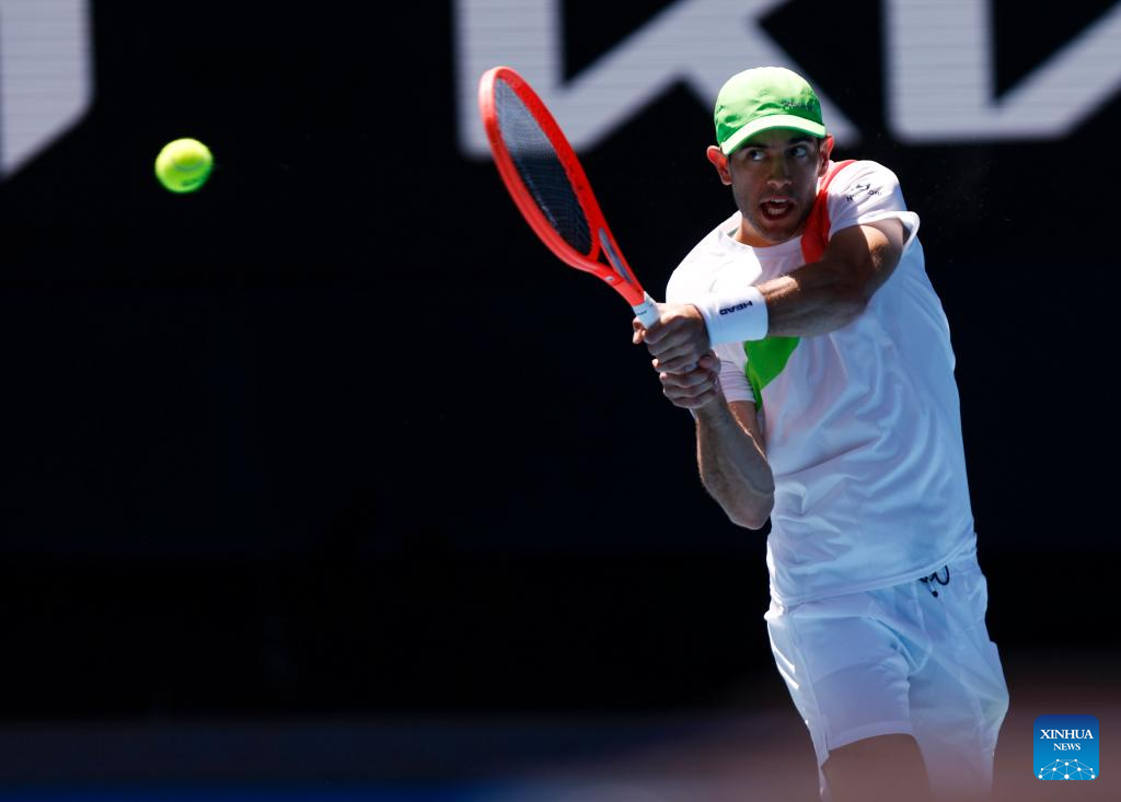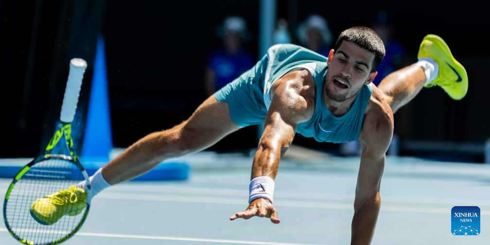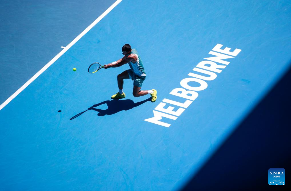 MELBOURNE, 17 enero, 2025 (Xinhua) -- Carlos Alcaraz devuelve la pelota durante el partido de tercera ronda de individuales masculinos entre Carlos Alcaraz, de España, y Nuno Borges, de Portugal, en el torneo de tenis Abierto de Australia, en Melbourne, Australia, el 17 de enero de 2025. (Xinhua/Ma Ping)