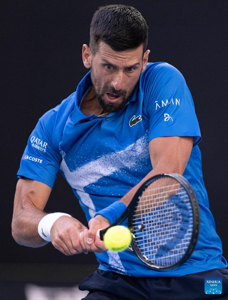 MELBOURNE, 17 enero, 2025 (Xinhua) -- Novak Djokovic devuelve la pelota durante el partido de tercera ronda de individuales masculinos entre Novak Djokovic, de Serbia, y Tomas Machac, de República Checa, en el torneo de tenis Abierto de Australia, en Melbourne, Australia, el 17 de enero de 2025. (Xinhua/Lui Siu Wai)