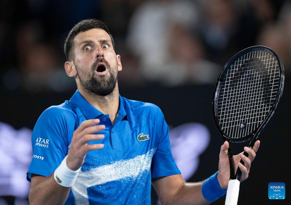 MELBOURNE, 17 enero, 2025 (Xinhua) -- Novak Djokovic reacciona durante el partido de tercera ronda de individuales masculinos entre Novak Djokovic, de Serbia, y Tomas Machac, de República Checa, en el torneo de tenis Abierto de Australia, en Melbourne, Australia, el 17 de enero de 2025. (Xinhua/Lui Siu Wai)