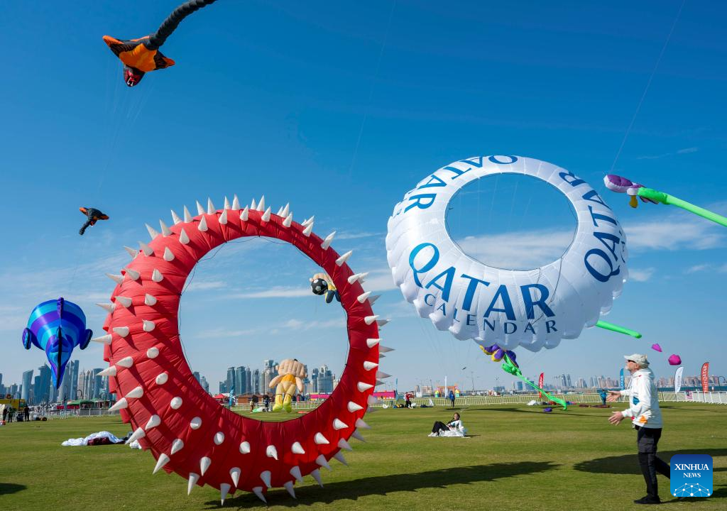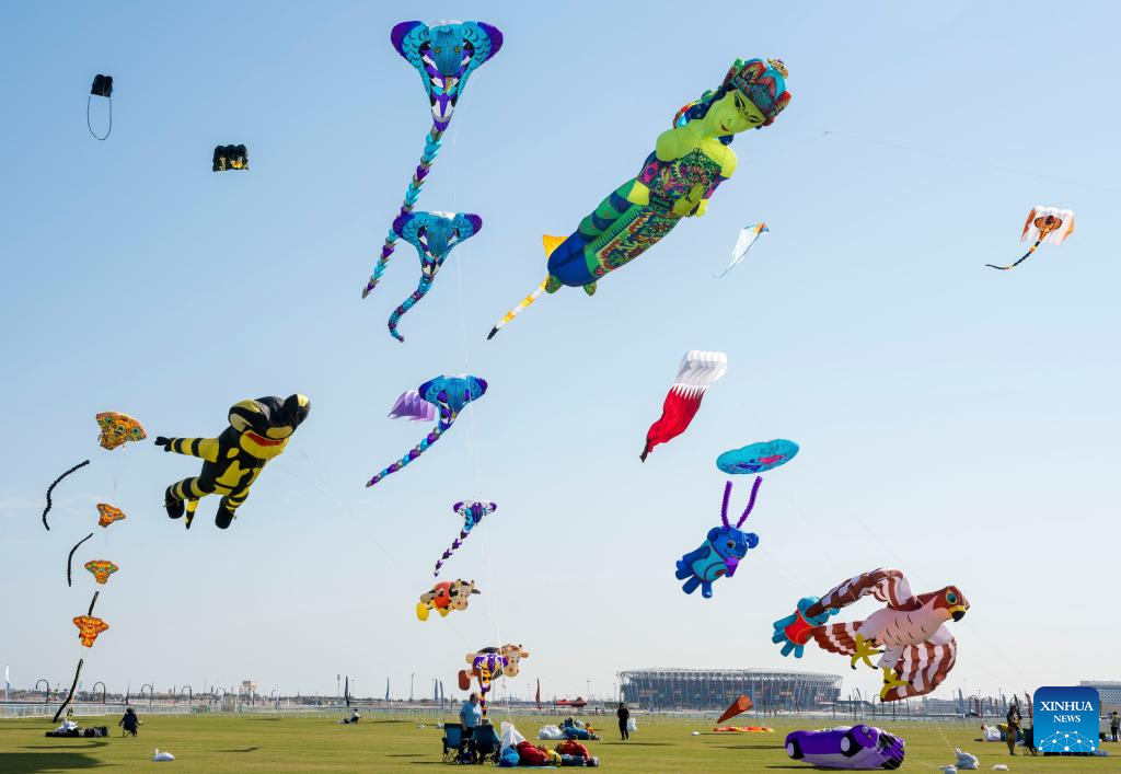 DOHA, 19 enero, 2025 (Xinhua) -- Cometas vuelan en el cielo durante el Festival de Cometas de Qatar 2025 en el Viejo Puerto de Doha, en Doha, Qatar, el 19 de enero de 2025. (Xinhua/Nikku)